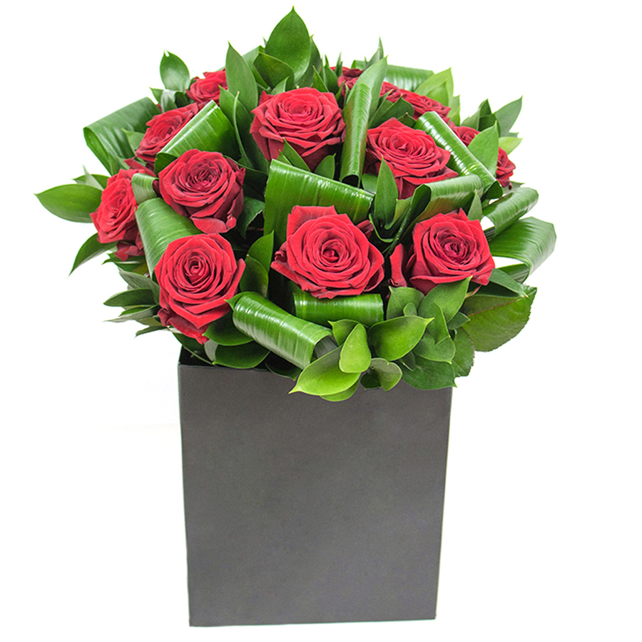 Add a touch of sophistication to your home with our classic red rose bouquet. This arrangement features stunning red roses paired with lush aspidistra leaves and elegant ruscus, creating a unique and beautiful display.